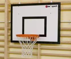 Sada obsahuje laminátovú dosku 0,9 x 1,2 m so špeciálnymi oceľovými háčikmi na pripevnenie k nástennej tyči a blokovacím zariadením pre bezpečné používanie, ako aj stabilný basketbalový kruh s lanovou sieťou.